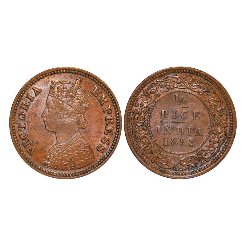 Victoria Empress, Copper, 1/2 Pice, 1898, Calcutta Mint, A/I, No mint mark. GK 878. Uncirculated. Scarce.