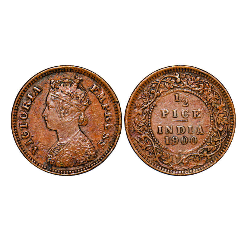 Victoria Empress, Copper, 1/2 Pice, 1900, Calcutta Mint, A/I, No mint mark. GK 880. Very Fine+. Scarce.