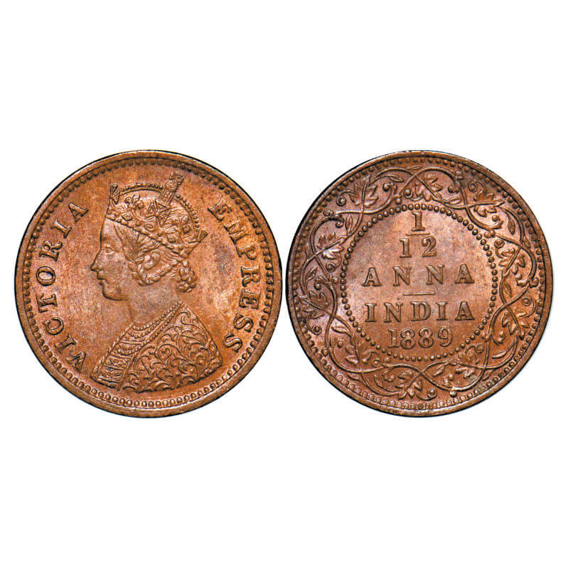 Victoria Empress, Copper, 1/12 Anna, (4 coins), 1893, 1894, 1895, 1897, Calcutta Mint, Obv B, No mi...