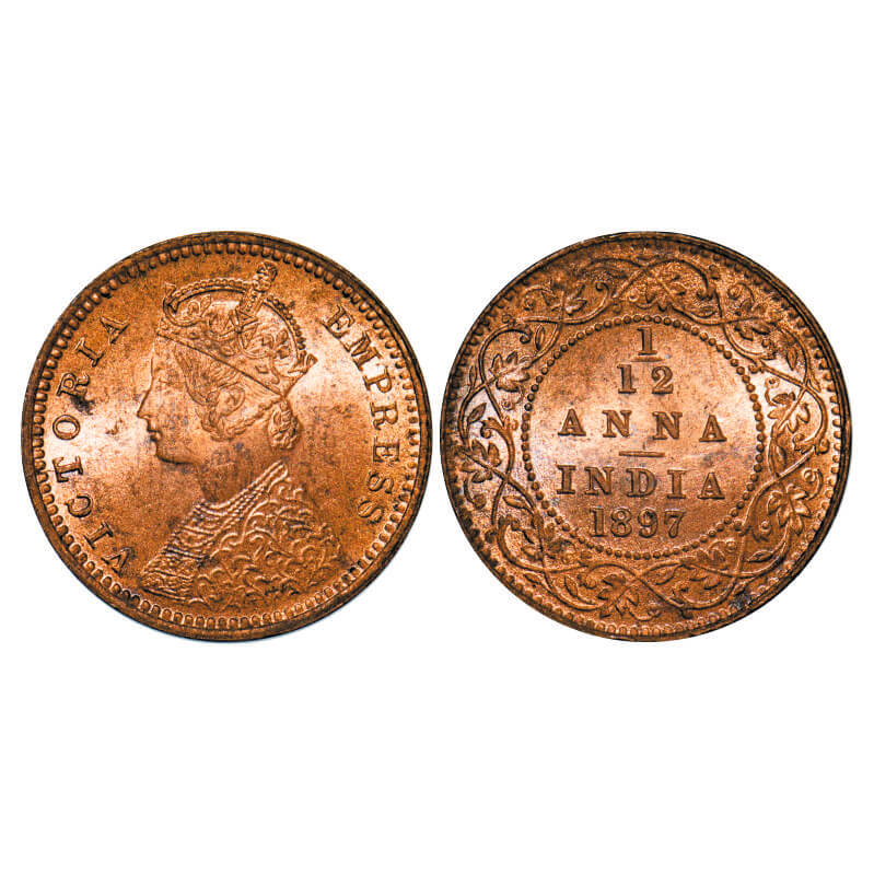 Victoria Empress, Copper, 1/12 Anna, (4 coins), 1893, 1894, 1895, 1897, Calcutta Mint, Obv B, No mi...