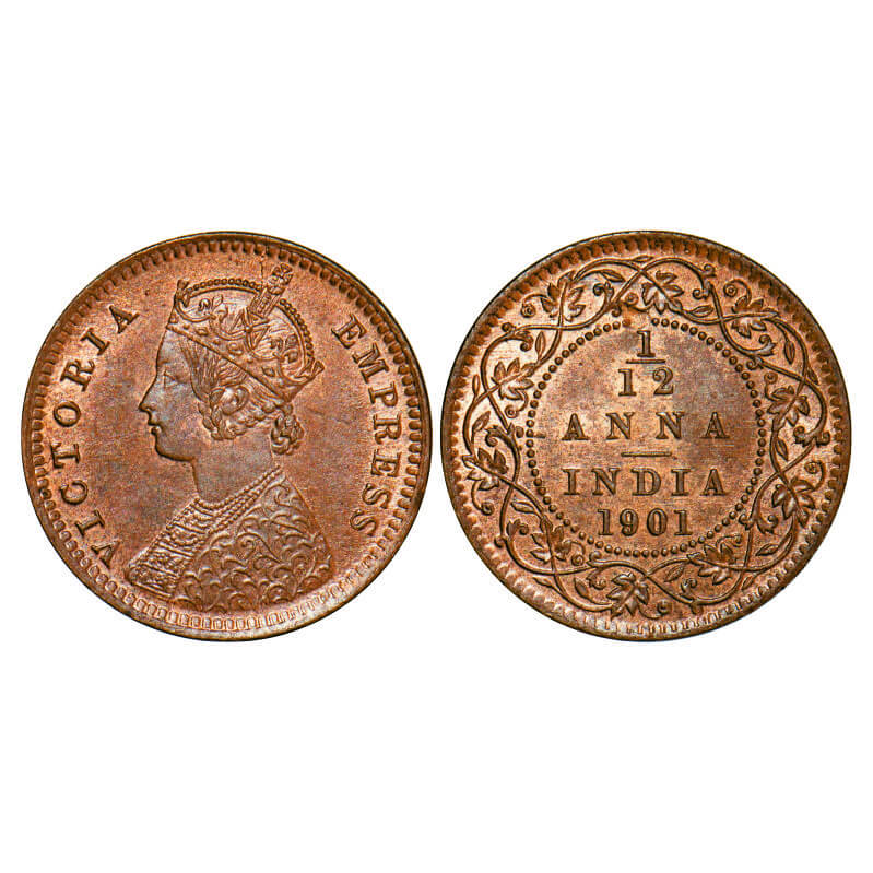 Victoria Empress, Copper, 1/12 Anna, 1901, Calcutta Mint, Obv 'B', No mint mark. GK 921. Brilliant Uncirculated. Scarce.