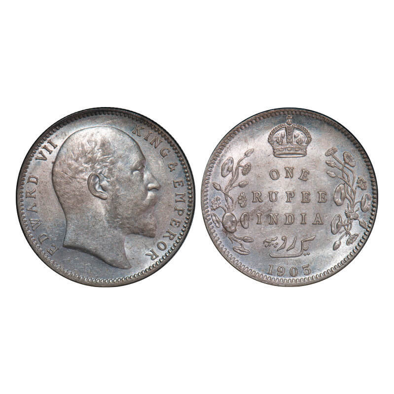 Edward VII, Silver, Rupee, 1903, Calcutta Mint, No mint mark, Normal 5 Diamonds. GK 924. Uncirculated. Scarce.