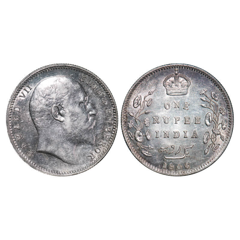 Edward VII, Silver, Rupee, 1906, Calcutta Mint, No mint mark. GK 938. Uncirculated. Scarce....