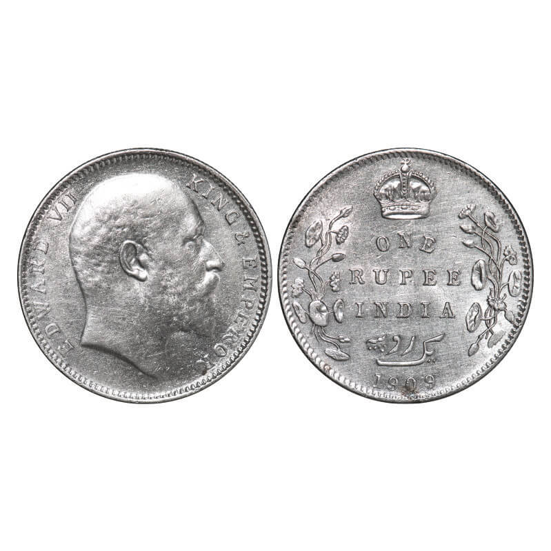 Edward VII, Silver, Rupee, 1909, Bombay Mint, 'B' incused and dot. GK 952. About Uncirculated, Cleaned. Scarce.