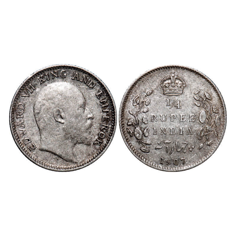 Edward VII, Silver, 1/4 Rupee, 1907, Calcutta Mint, No mint mark. GK 976. Extremely Fine. Scarce.