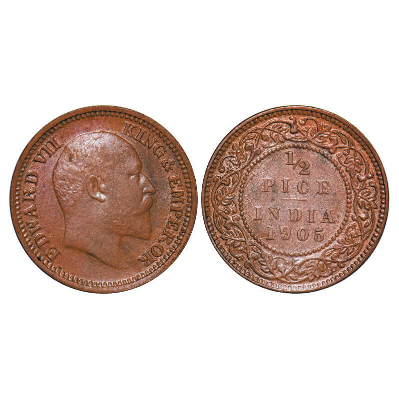 Edward VII, Copper, 1/2 Pice, 1905, Calcutta Mint, No mint mark. GK 1005. Almost Uncirculated. Scarce.