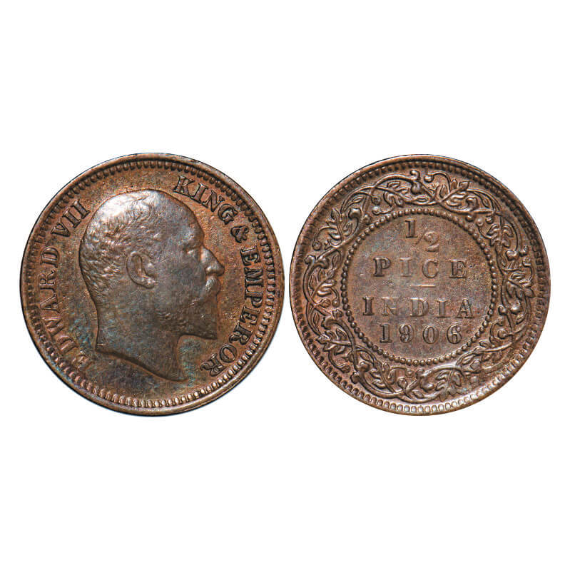 Edward VII, Copper, 1/2 Pice, 1906, (3.12g), Calcutta Mint, No mint mark. GK 1006. About Uncirculated, Cleaned. Scarce.
