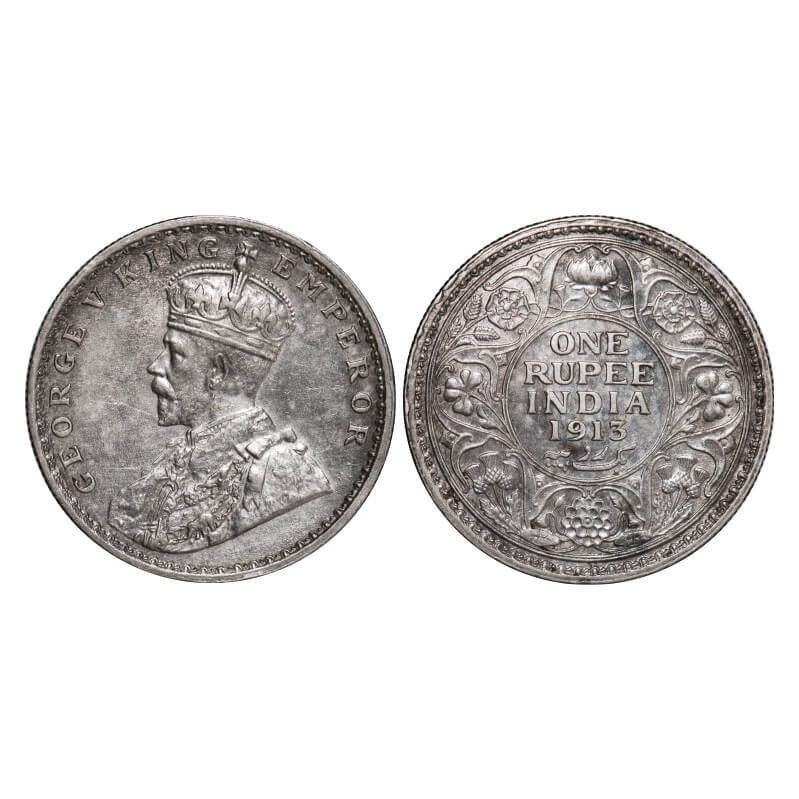 George V, Silver, Rupee, 1913, Calcutta Mint, No dot. GK 1027. Extremely Fine+, Cleaned. Scarce.