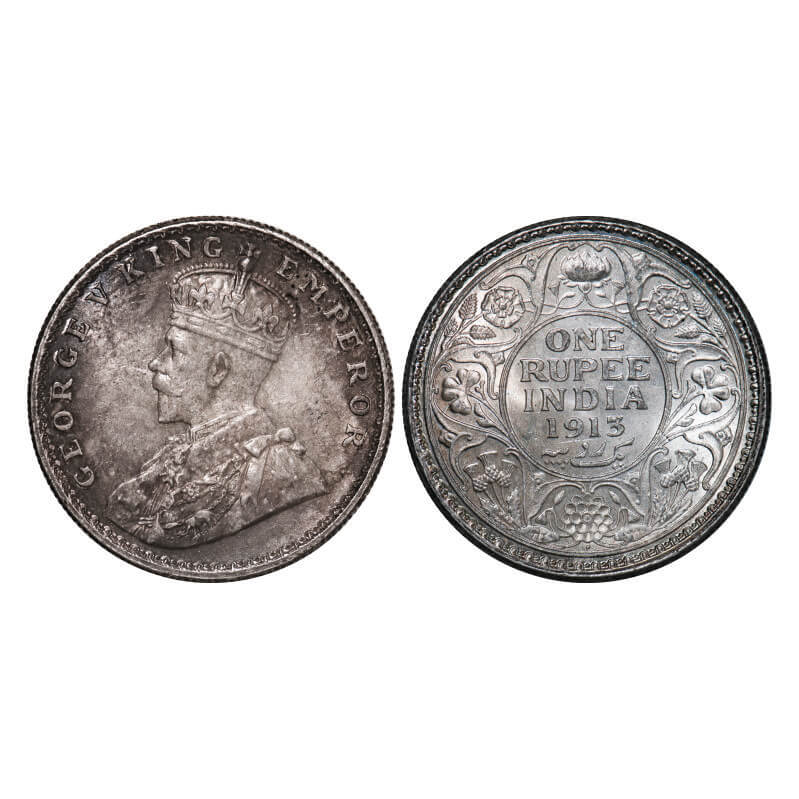 George V, Silver, Rupee, 1913, Bombay Mint, Dot. GK 1028. Mint State, Toned (obv). Scarce.