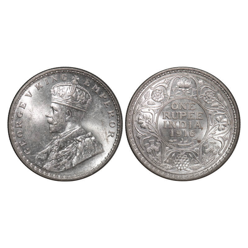 George V, Silver, Rupee, 1916, Calcutta Mint, No dot. GK 1033. Uncirculated. Scarce.