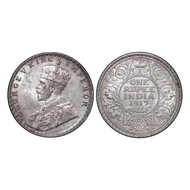 George V, Silver, Rupee, 1917, Bombay Mint, Dot, Alphabate 'R' of Rupee seen on Obv. GK 1036. Brilliant Uncirculated. Scarce.