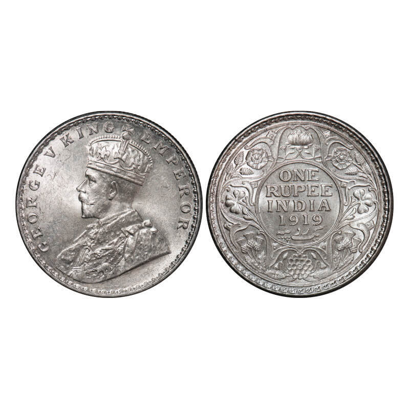George V, Silver, Rupee, 1919, Calcutta Mint, No dot. GK 1039. Mint State. Very Scarce.