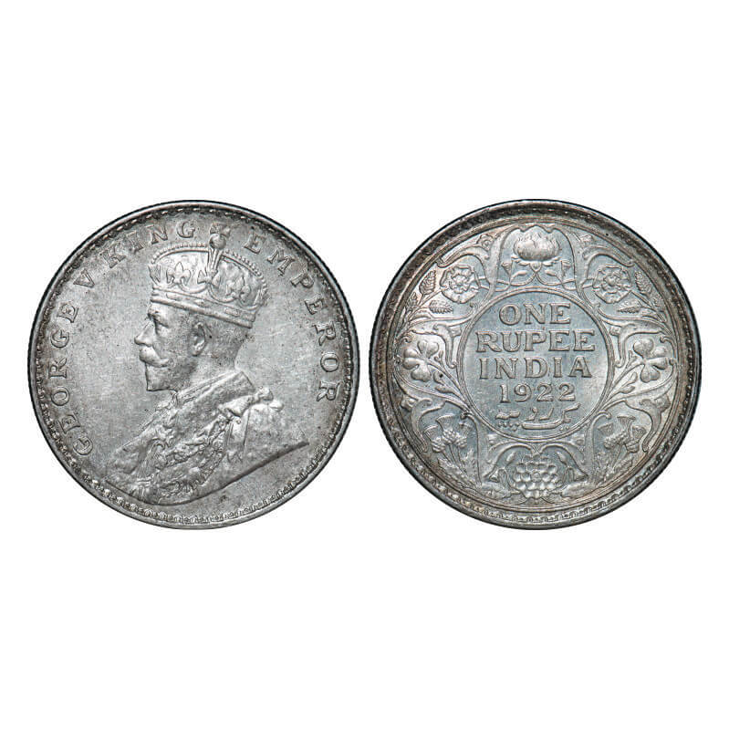 George V, Silver, Rupee, 1922, Bombay Mint, Dot. GK 1044. Brilliant Uncirculated. Rare.