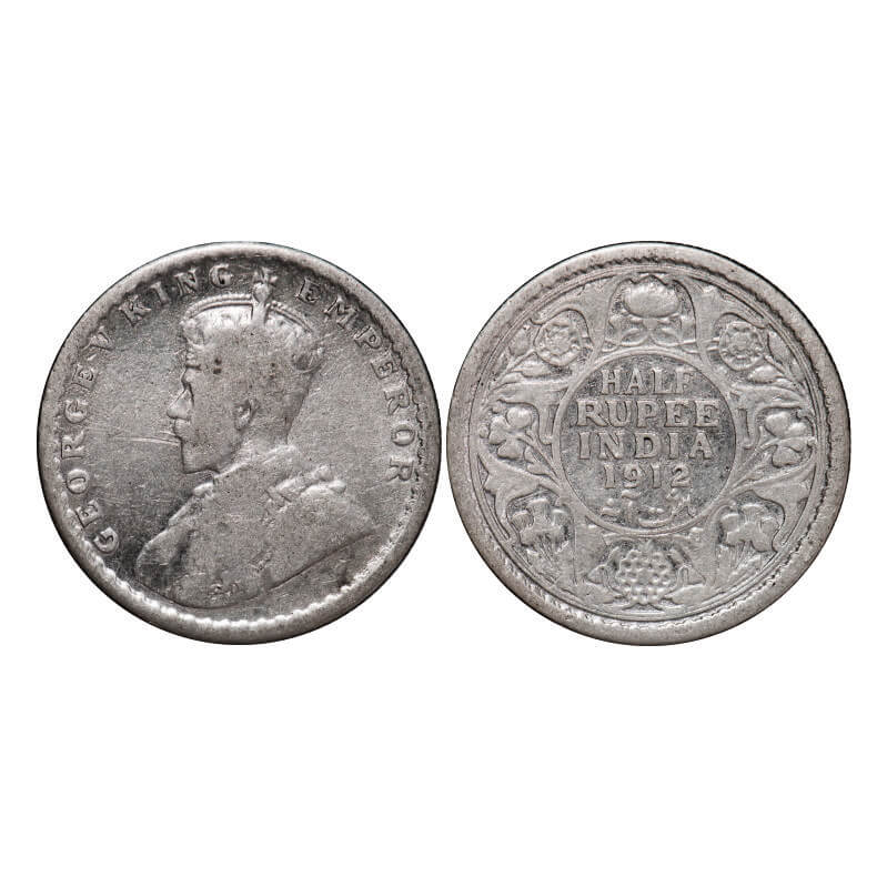 George V, Silver, Half Rupee, 1912, Calcutta Mint, No dot. GK 1046. Fine, Cleaned. Scarce.