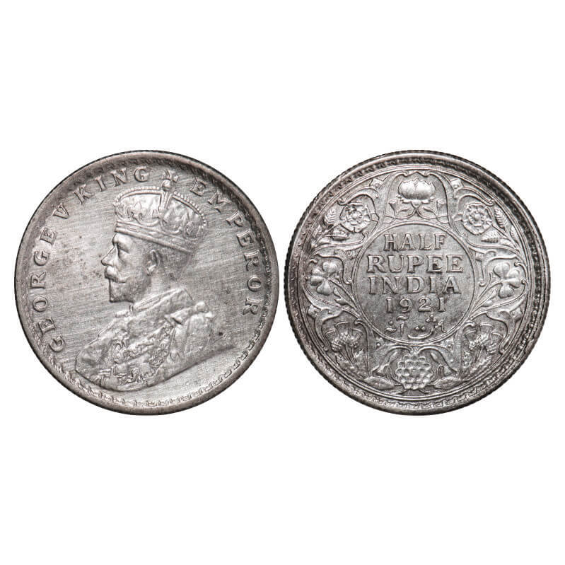 George V, Silver, Half Rupee, 1921, Calcutta Mint, No dot. GK 1058. Extremely Fine+, Cleaned. Scarce.
