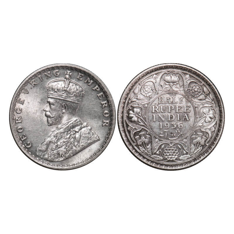 George V, Silver, Half Rupee, 1936, Calcutta Mint, No dot. GK 1075. Extremely Fine+. Scarce.
