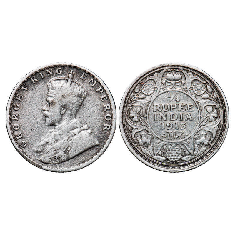 George V, Silver, 1/4 Rupee, 1915, Bombay Mint, Dot. GK 1088. Very Fine. Scarce.