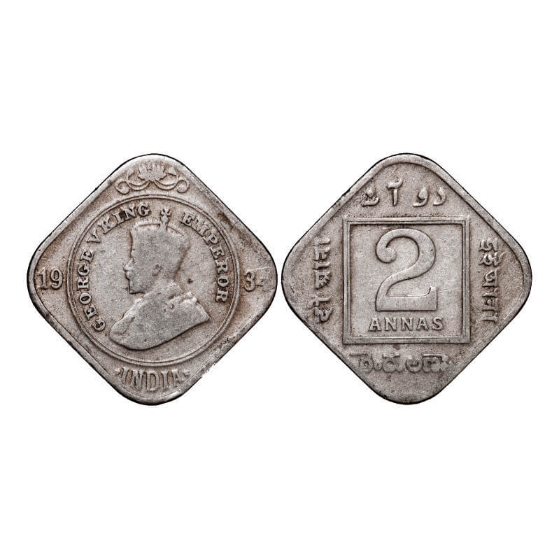 George V, Copper-Nickel, 2 Annas, 1934, Calcutta Mint, No dot. GK 1137. Fine. Scarce.