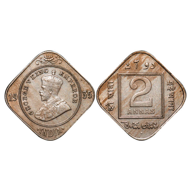 George V, Copper-Nickel, 2 Annas, 1935, Bombay Mint, Dot. GK 1139. Extremely Fine+. Scarce.