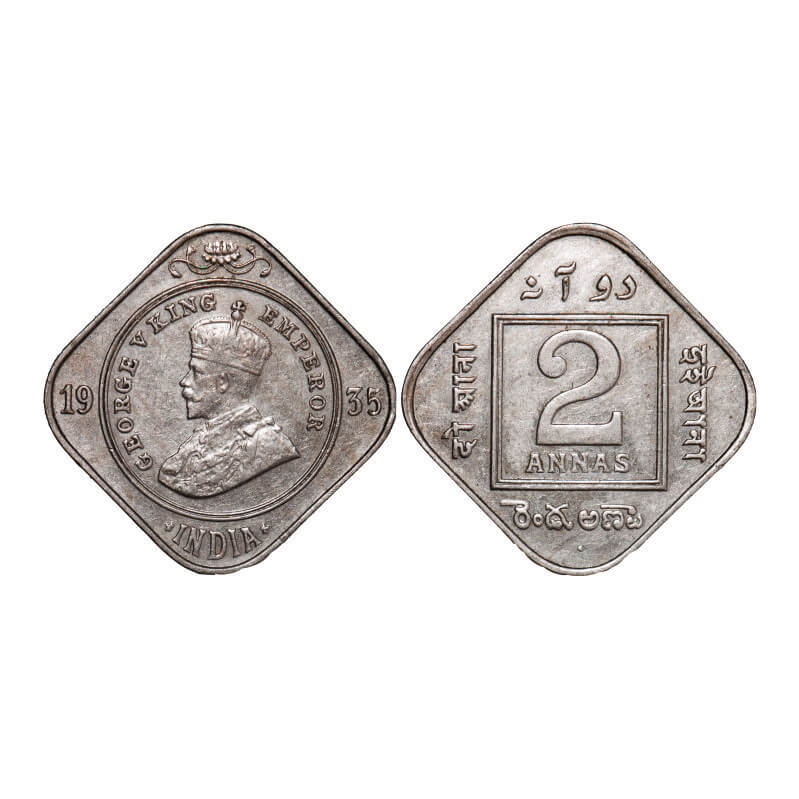 George V, Copper-Nickel, 2 Annas, 1935, Bombay Mint, Dot. GK 1139. About Uncirculated. Scarce.