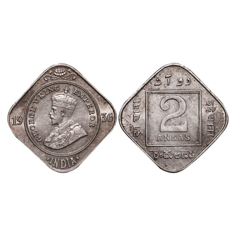George V, Copper-Nickel, 2 Annas, 1936, Bombay Mint, Dot. GK 1140. Extremely Fine+. Scarce.