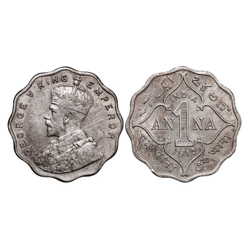 George V, Copper-Nickel, 1 Anna, 1913, Bombay Mint, No dot. GK 1143. About Uncirculated. Scarce.
