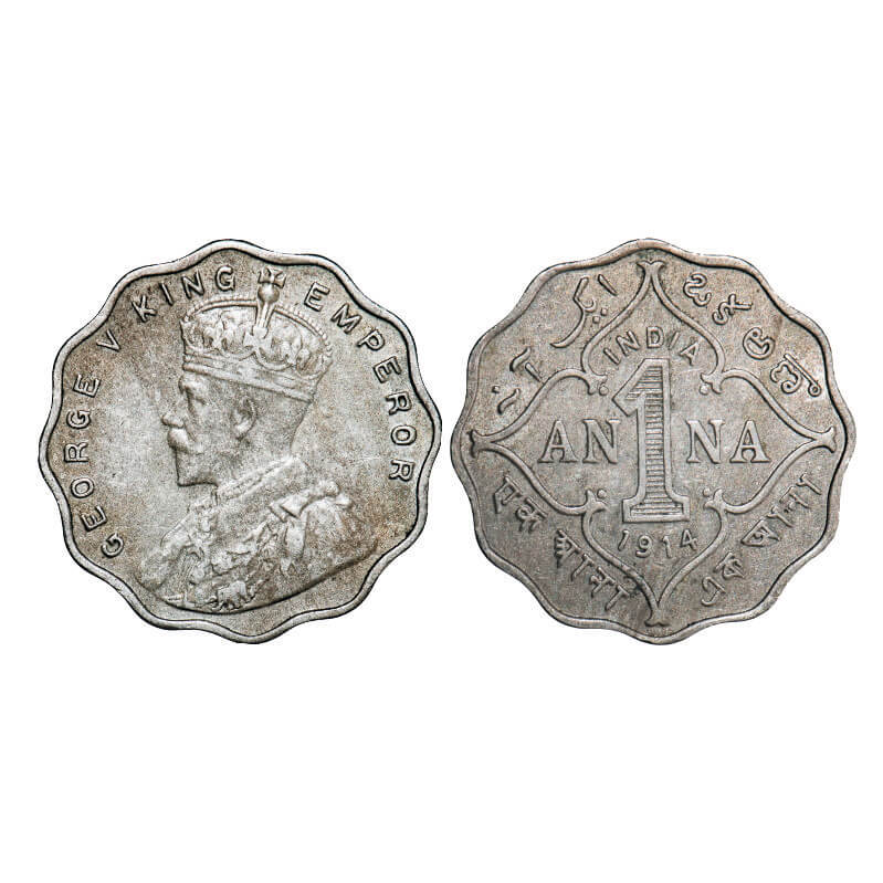 George V, Copper-Nickel, 1 Anna, 1914, Bombay Mint, No dot. GK 1144. About Uncirculated. Scarce.