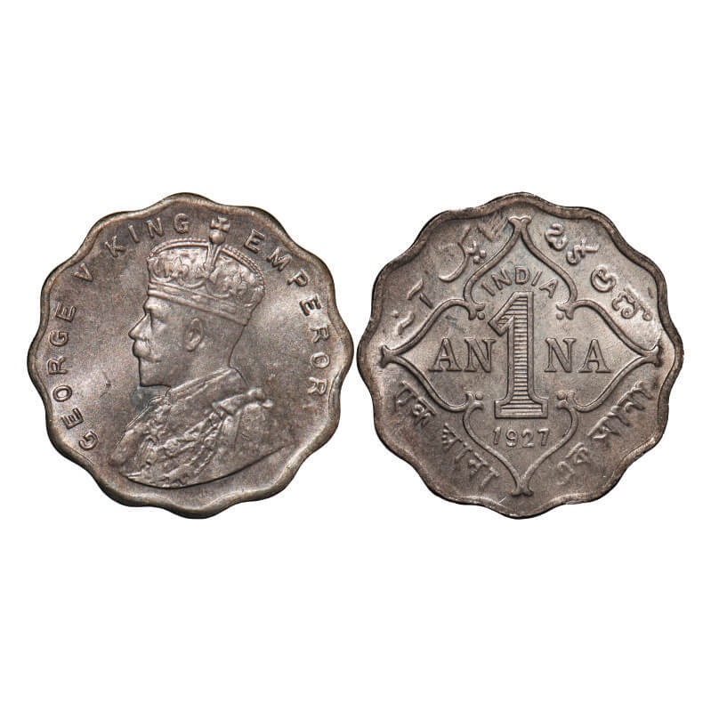 George V, Copper-Nickel, 1 Anna, 1927, Calcutta Mint, No dot. GK 1159. Uncirculated. Very Scarce.