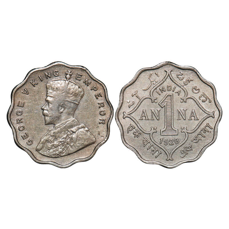 George V, Copper-Nickel, 1 Anna, 1929, Calcutta Mint, Die crack on Obverse & Reverse. GK 1162. Abou...