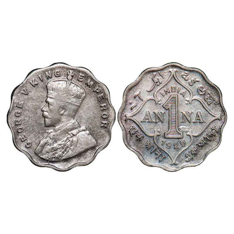 George V, Copper-Nickel, 1 Anna, 1929, Calcutta mint, No dot, Ghost on Rev. GK 1162. Almost Uncirculated. Scarce.
