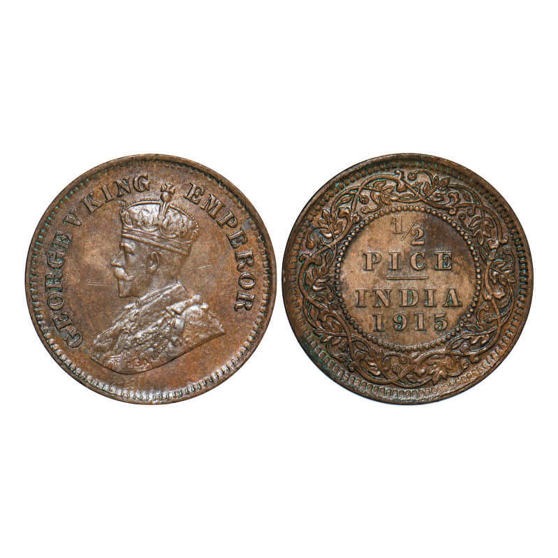 George V, Bronze, 1/2 Pice, 1915, Calcutta Mint, No mint mark. GK 1201. Uncirculated. Very Scarce.