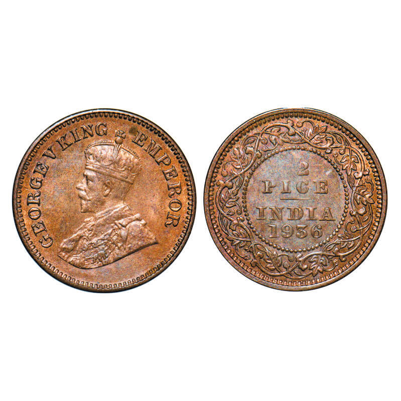 George V, Bronze, 1/2 Pice, (2 coins), 1936, Calcutta Mint, No mint mark, 1) Numeral 1,9,3,6 of yea...