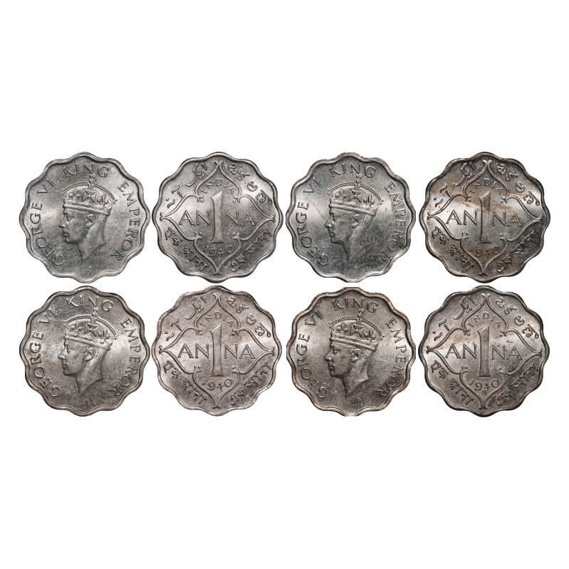 George VI, Copper-Nickel, 1 Anna, 1940, (4 coins), Calcutta Mint, Head Type II, No dot. GK 1385. Uncirculated. Scarce as a lot.