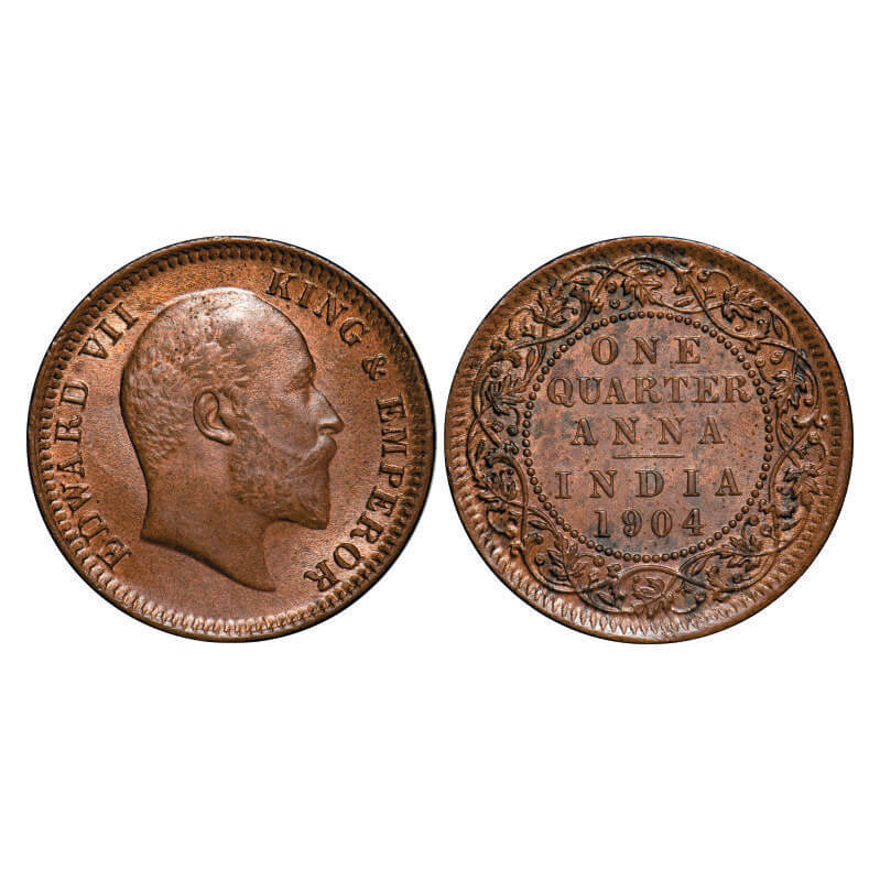 Edward VII, Copper, Quarter Anna, 1904, Calcutta Mint, No mint mark. GK 995. Brilliant Uncirculated. Scarce.