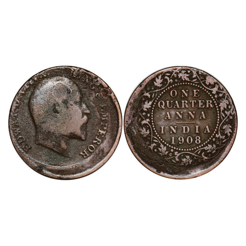 Edward VII, Bronze, Quarter Anna, 1909, Calcutta Mint, No mint mark. GK 1001. Very Fine. Scarce....