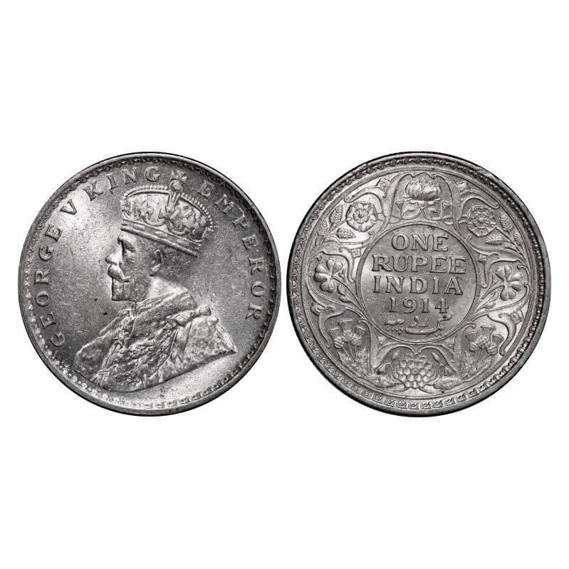 George V, Silver, Rupee, 1914, Calcutta Mint, No dot. GK 1029. Brilliant Uncirculated. Very Scarce.