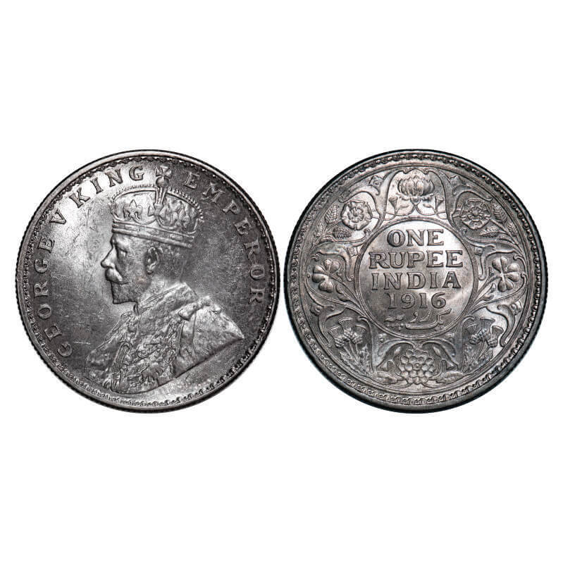 George V, Silver, Rupee, 1916, Calcutta Mint, No dot. GK 1033. Brilliant Uncirculated. Very Scarce....