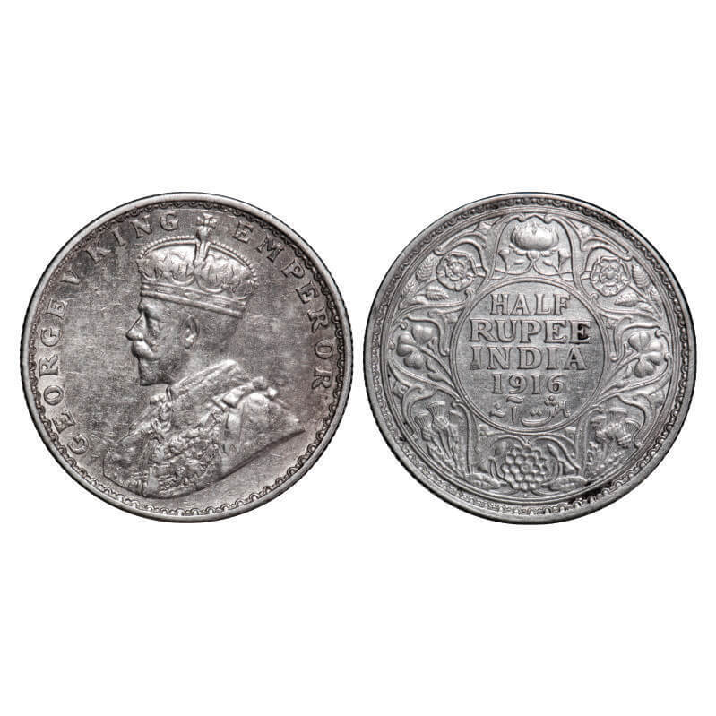 George V, Silver, Half Rupee, 1916, Bombay Mint, Dot, Planchet flaw on obv. GK 1054. Extremely Fine+. Scarce.