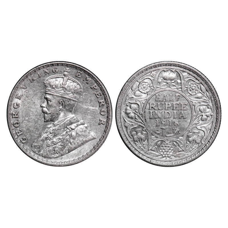 George V, Silver, Half Rupee, (3 coins), 1) 1917, Bombay Mint, Dot, 2) 1918, Bombay Mint, Dot, 3) 1...