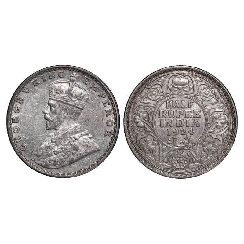 George V, Silver, Half Rupee, 1924, Bombay Mint, Dot. GK 1064. About Uncirculated. Very Scarce.
