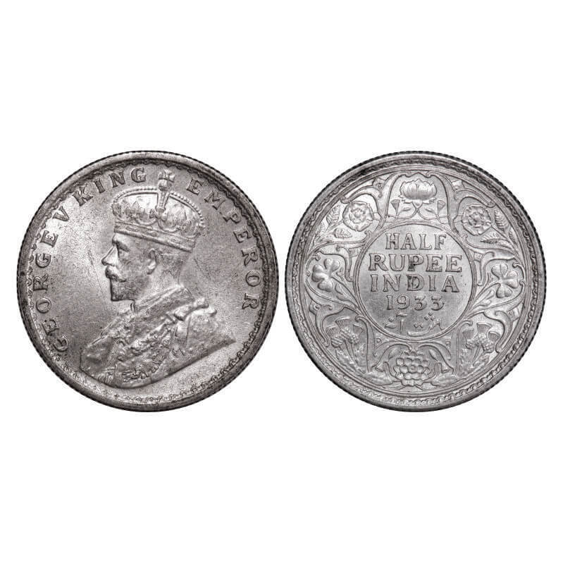George V, Silver, Half Rupee, 1933, Calcutta Mint, No dot. GK 1073. Uncirculated. Scarce.