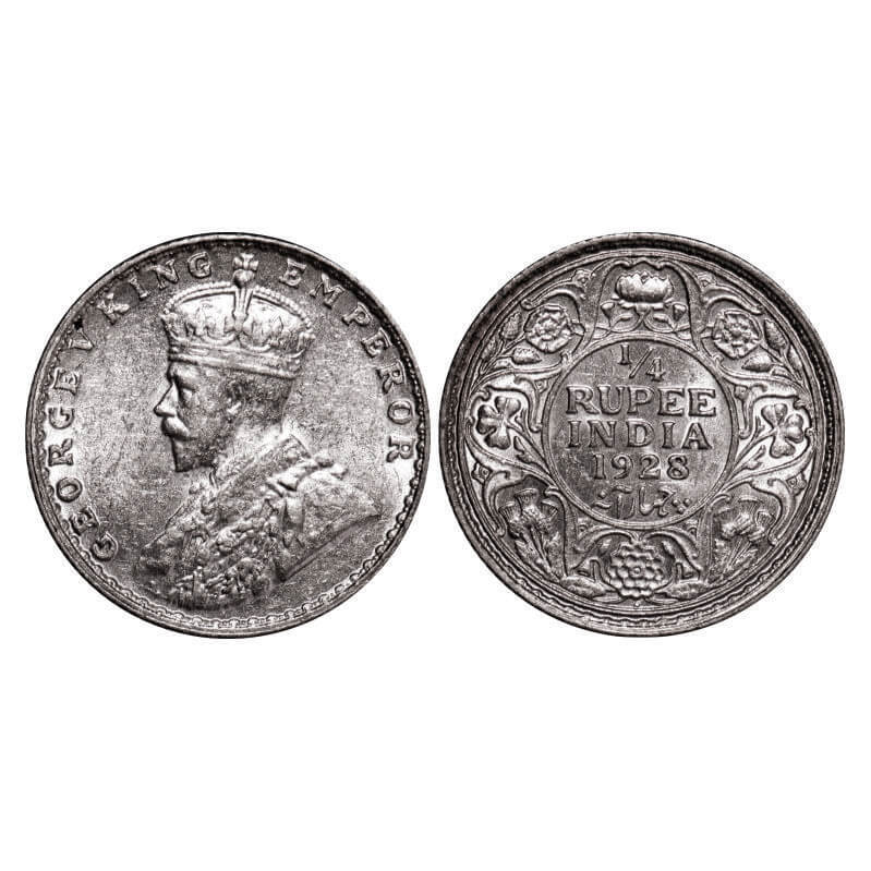 George V, Silver, 1/4 Rupee, 1928, Bombay Mint, Dot. GK 1095. Brilliant Uncirculated. Very scarce.