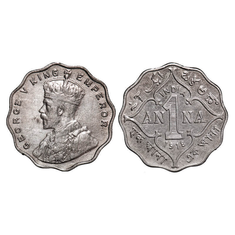 George V, Copper-Nickel, 1 Anna, 1918, Bombay Mint, No dot. GK 1148. About Uncirculated. Scarce.