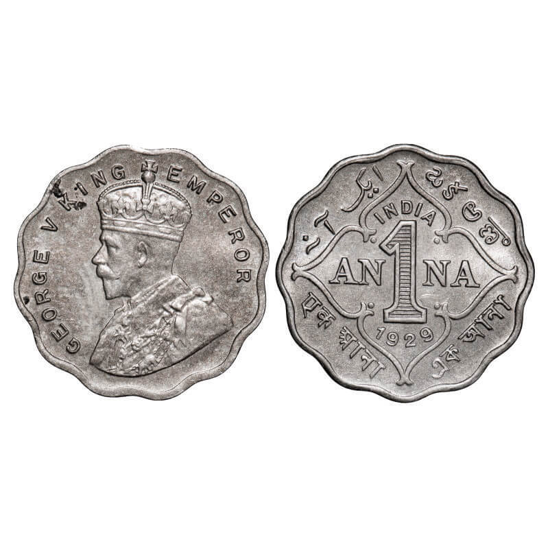 George V, Copper-Nickel, 1 Anna, 1929, Calcutta Mint, No dot, Ghost on Rev. GK 1162. Uncirculated. Scarce.