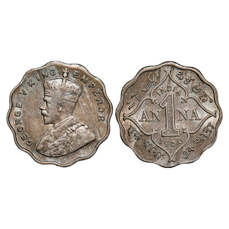 George V, Copper-Nickel, 1 Anna, 1930, Calcutta Mint, No dot, Ghost on Rev. GK 1163. Extremely Fine+. Scarce.