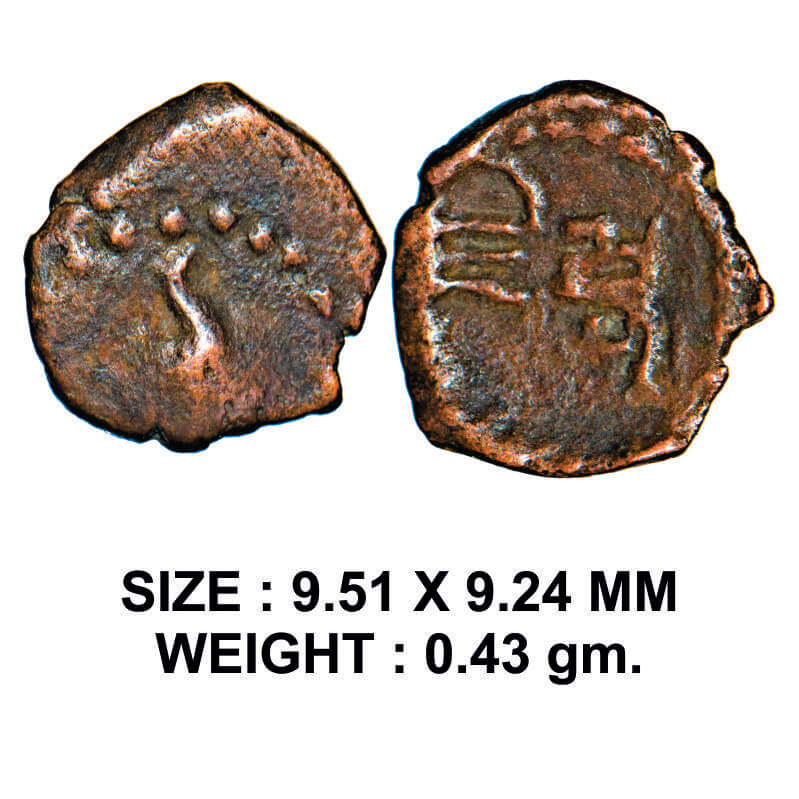 Post-Mauryan, Ujjaini Region, Jishnu as Local Ruler, Copper Unit, 0.43g, Obv: Conch shell within dotted border, Rev: Brahmi legend Jishnu within dotted circle. Mitch ACW # 4902. About Very Fine, Scarce.