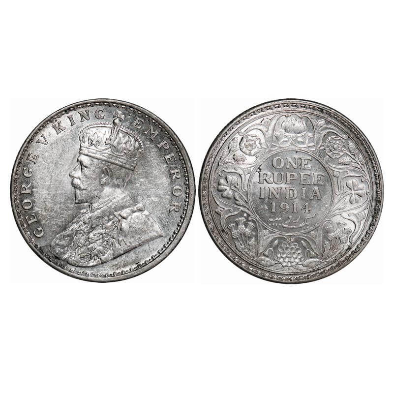 George V, Silver, Rupee, 1914, Bombay Mint, Dot. F. Prid. 220. GK 1030. Uncirculated. Very Scarce.