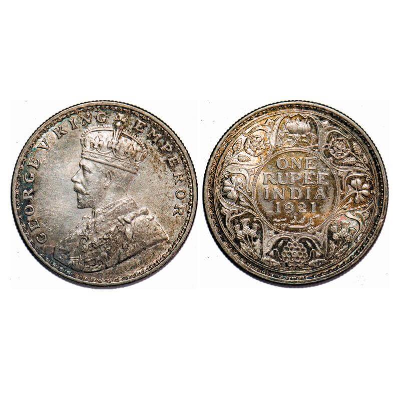George V, Silver, Rupee, 1921, Bombay Mint, Dot. F. Prid 227. GK 1043. About Uncirculated, Toned. Scarce.