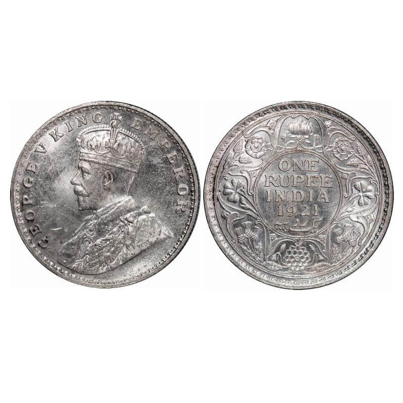 George V, Silver, Rupee, 1921, Bombay Mint, Dot. F. prid 227. GK 1043. Brilliant Uncirculated, With original mint luster. Rare.