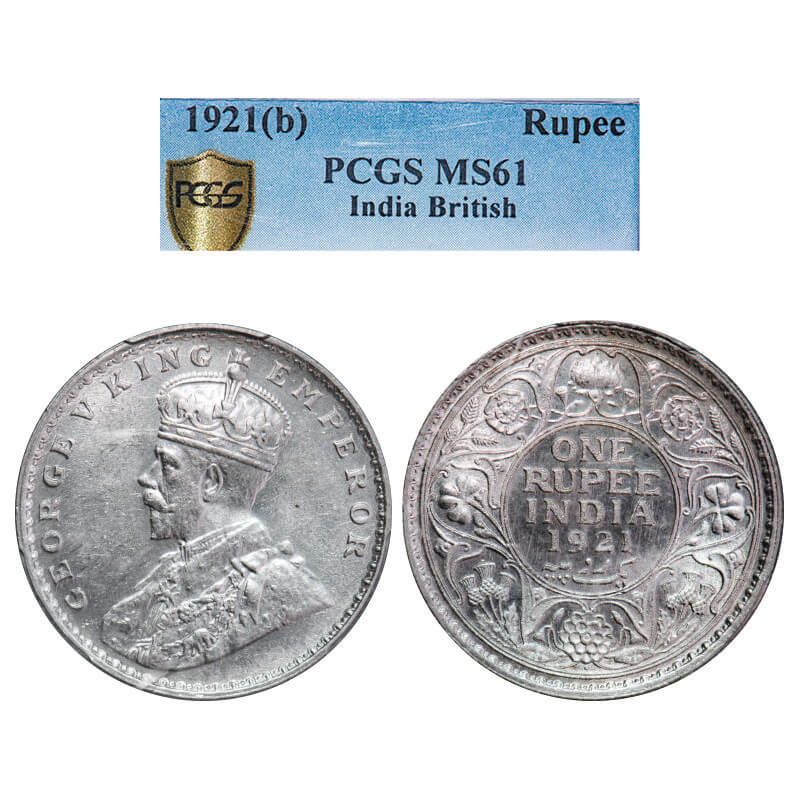 George V, Silver, Rupee, 1921, Bombay Mint, Dot, Elephant Type. F. Prid. 227. GK 1043. PCGS Slabbed MS 61. Rare.